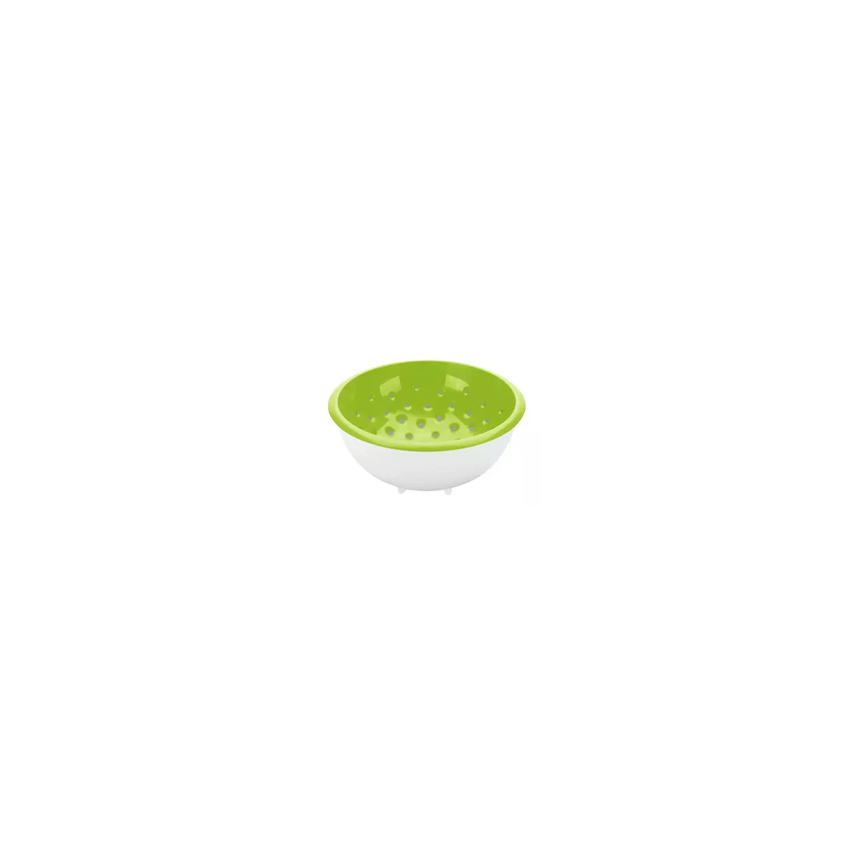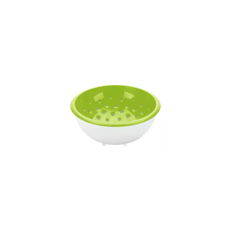 Excelente para enjuagar frutas y verduras bajo el grifo de agua corriente y para servir. El agua de restante de los alimentos enjuagados gotea en el plato. Cada recipiente puede ser utilizado separadamente el plato para preparar y servir ensaladas o servir frutas, el colador para escurrir pasta hervida, patatas, etc. Fabricado de excelente plástico resistente. Apto para frigorífico y lavavajillas. Garantía de 3 años.