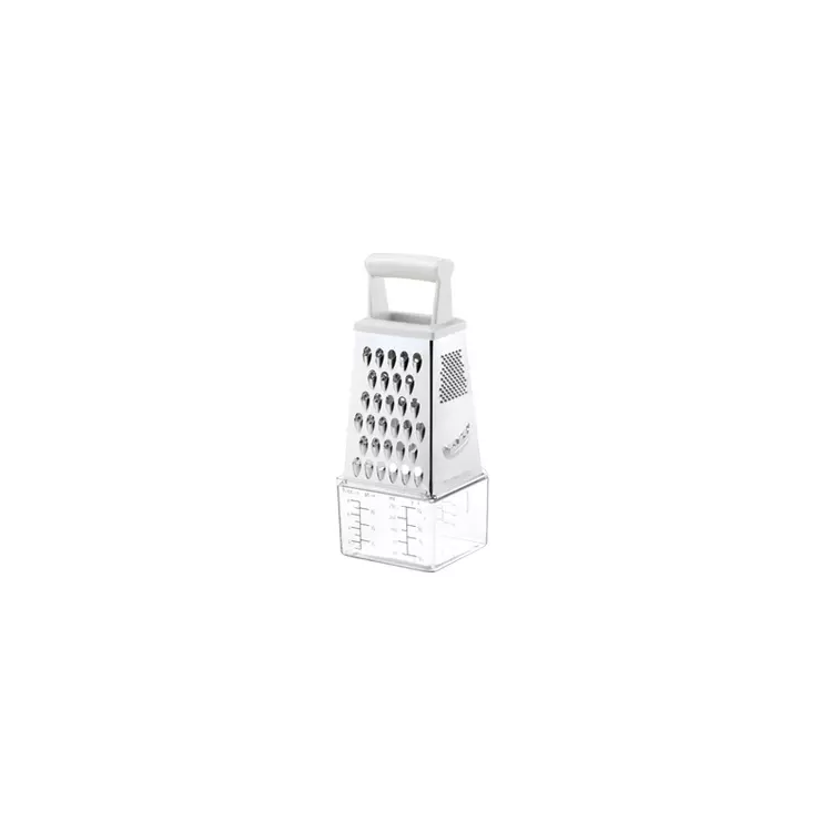 Excelente para rallar, cortar en rodajas y medir alimentos fácil y rápidamente. Fabricado en acero inoxidable de primera calidad; mango ergonómico de resistente plástico. El recipiente medidor está provisto de escalas para rallado fino de parmesano, rallado grueso deEmmental, sustancias en polvo y líquidos. Lavar y secar después de usar; apto para lavavajillas. Garantía de 3 años.