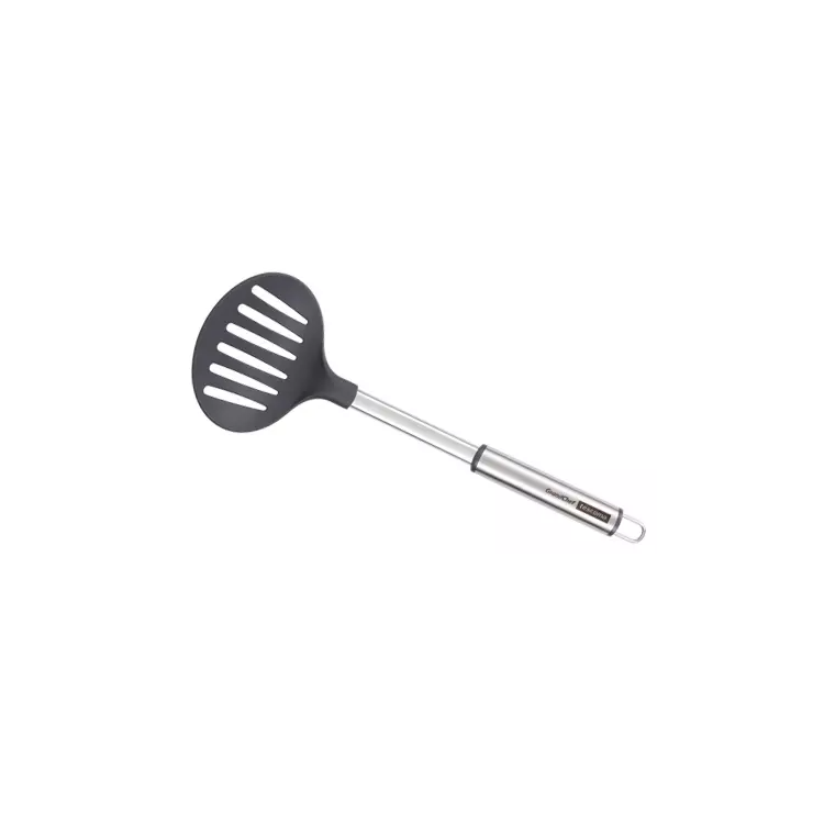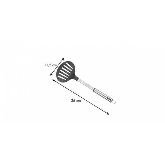 Fabricado de acero inoxidable de alta calidad y nylon resistente al calor (210 °C). Adecuado para todo tipo baterías de cocina, excelente para baterías con recubrimiento antiadherente - no dañan la superficie. Apto para lavavajillas. Garantía de 3 años.