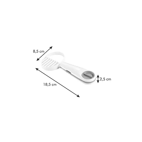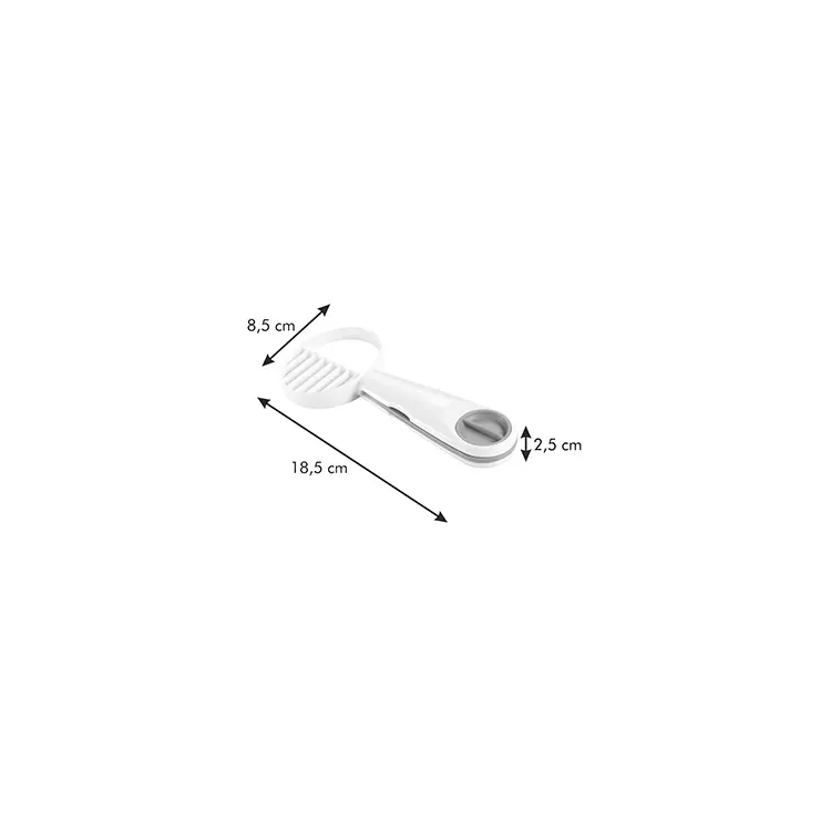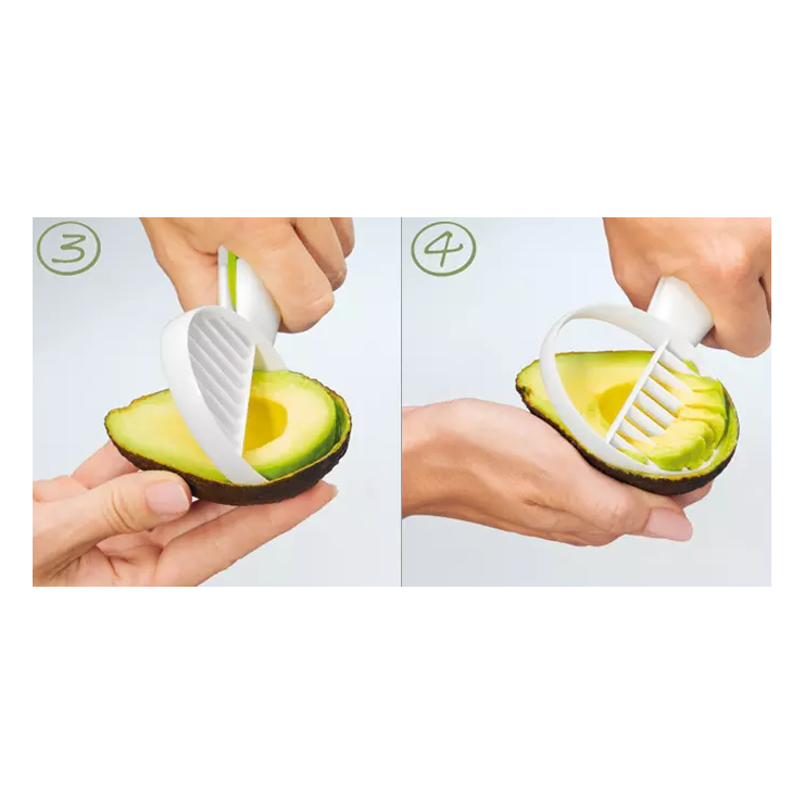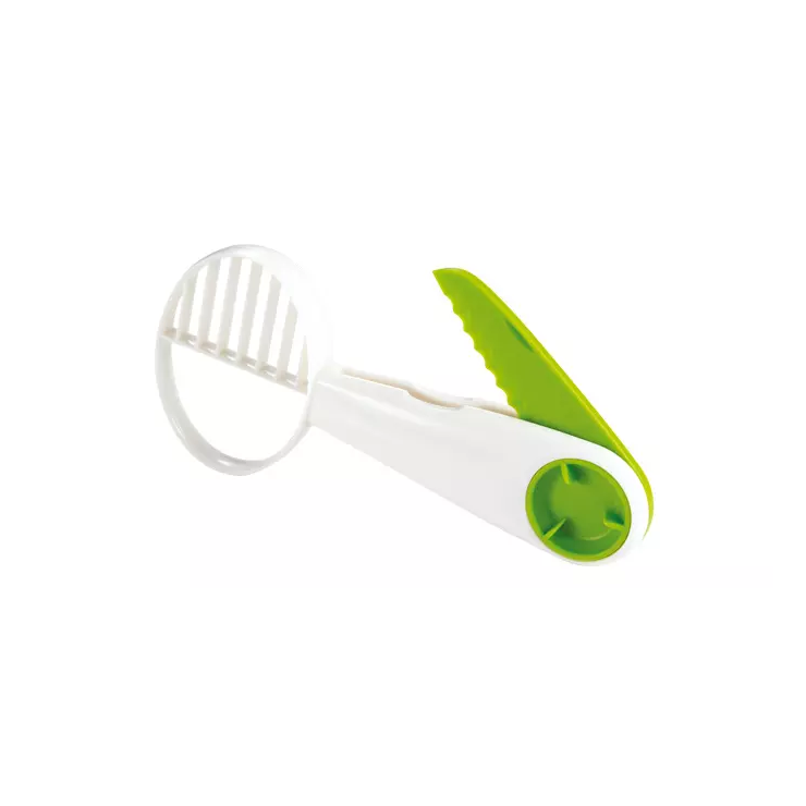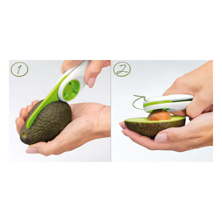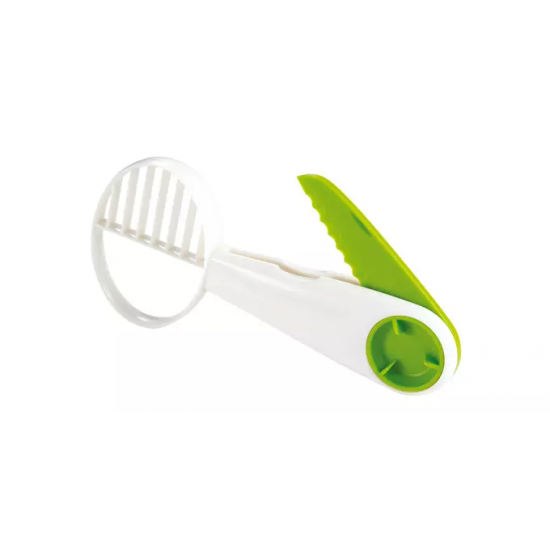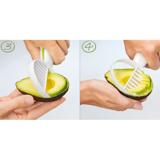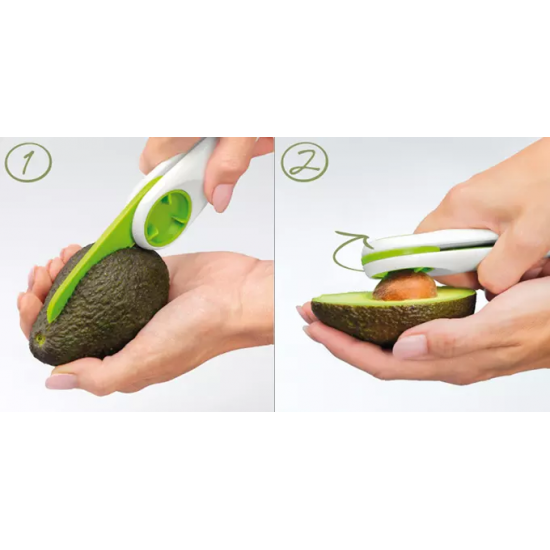Corta aguacate de manera fácil y rápida, retira el hueso y extrae la pulpa de una pieza o en rodajas. Fabricado de plástico resistente. Apto para lavavajillas. Garantía de 3 años.