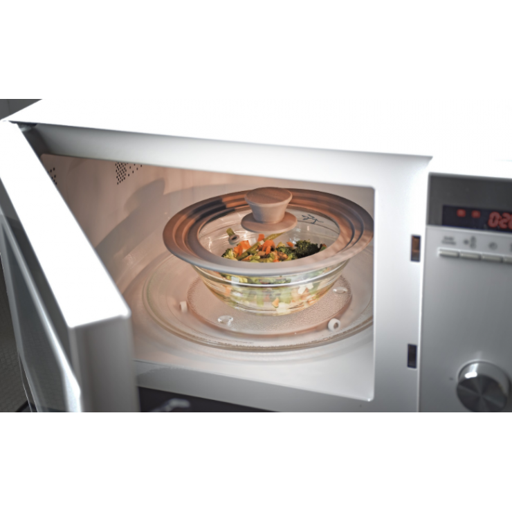 Tapa de vidrio ·temperit· y silicona, apta para el microondas y lavavajillas. Para diámetros de 16-18-20 cm