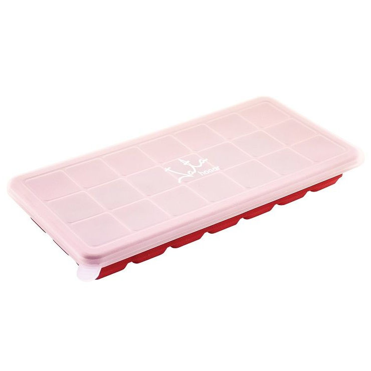 Bandeja de silicona para hielos con tapa protectora. Muy fácil de desmoldar. Totalmente flexible. Tapa protectora. 21 cubitos de 3 x 3 cm. 100% silicona platino.