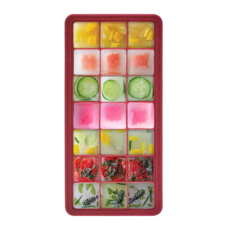 - Bandeja para hielos de silicona, 21 cubitos de 3 x 3 cm.