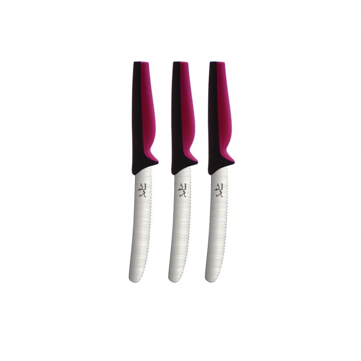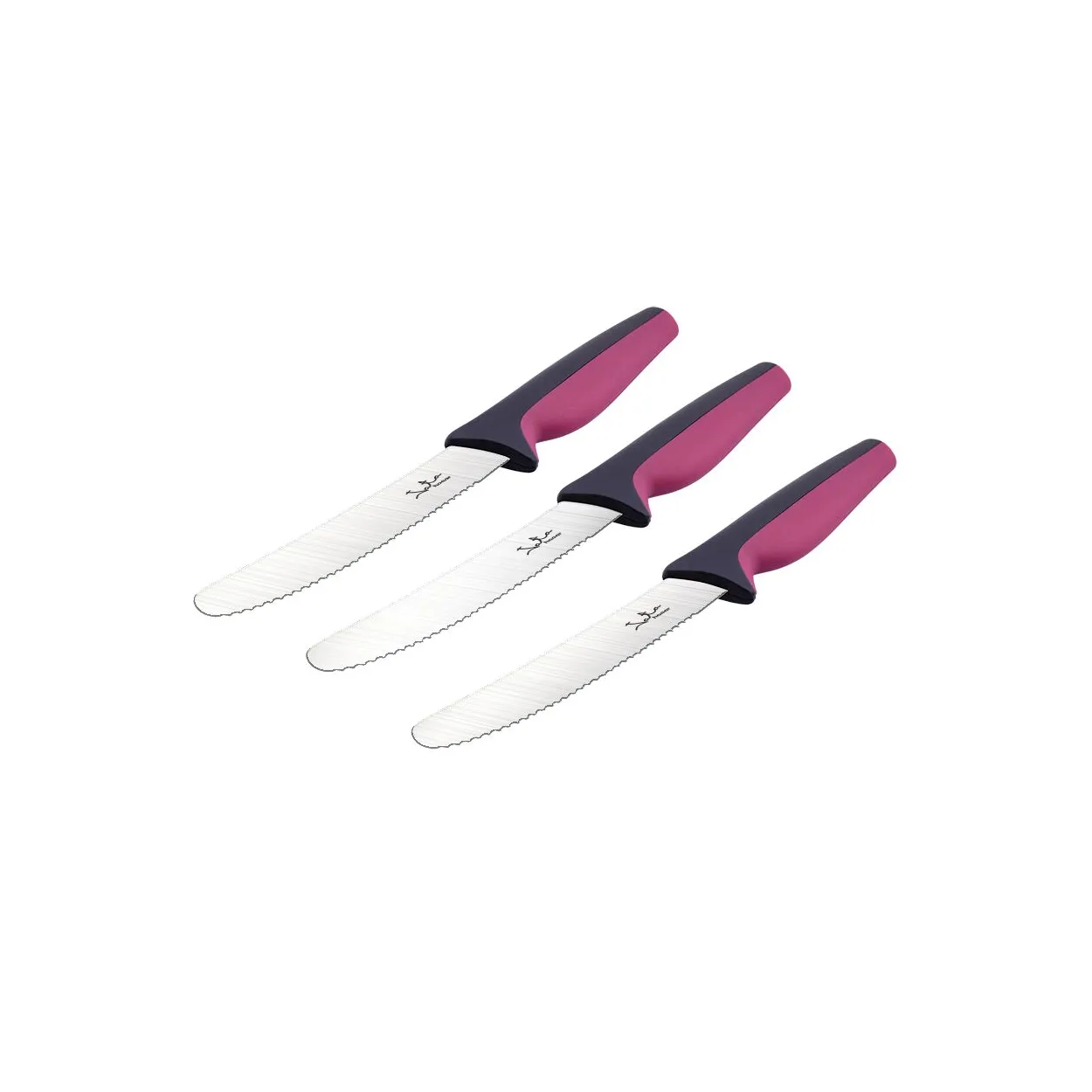 - 3 cuchillos, tomatero, panero, de mesa, multiusos, con hoja de sierra.