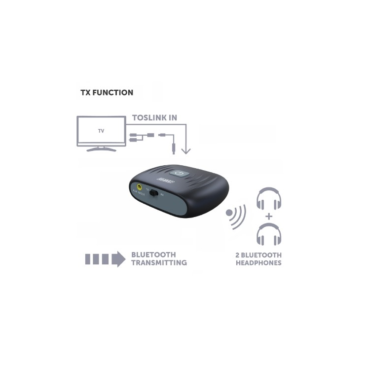 - Este dispositivo consta de un transmisor y un receptor Bluetooth integrados. Como transmisor: puede transmitir sonido estéreo de alta calidad desde Smart TV, caja de juegos, TV, DVD, etc. a dispositivos Bluetooth como auriculares, altavoces, etc. Como receptor: transmite audio desde dispositivos Bluetooth como teléfonos inteligentes, tabletas, PC a parlantes / auriculares domésticos.