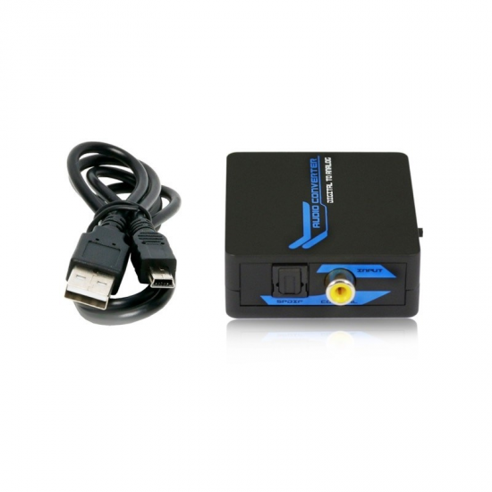 - Convierte la entrada de audio digital óptica o coaxial a las salidas analógicas RCA y salida jack de 3,5 mm para auriculares simultáneamente