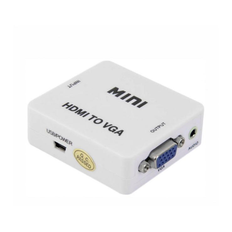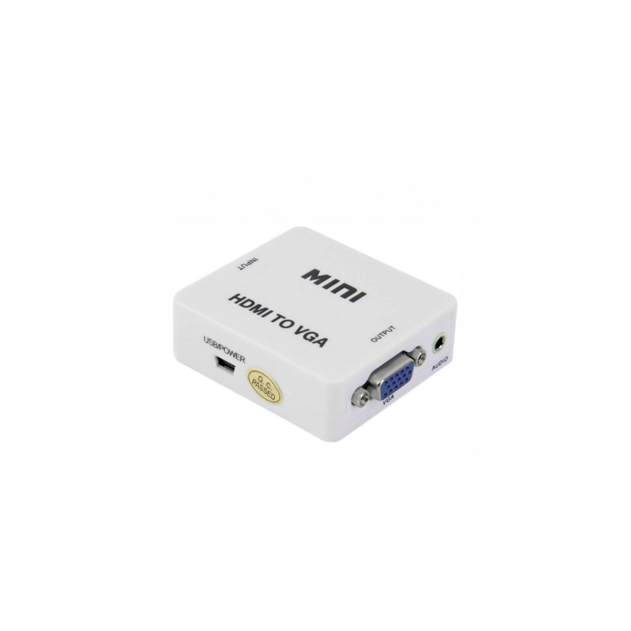 - Conversor que permite conectar dispositivos HDMI a televisores o monitores que dispongan de entrada VGA.