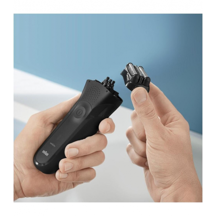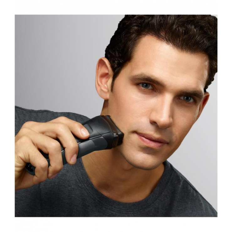- Afeitadora eléctrica con 3 elementos de afeitado sensibles a la presión para mayor eficiencia y bienestar en la piel