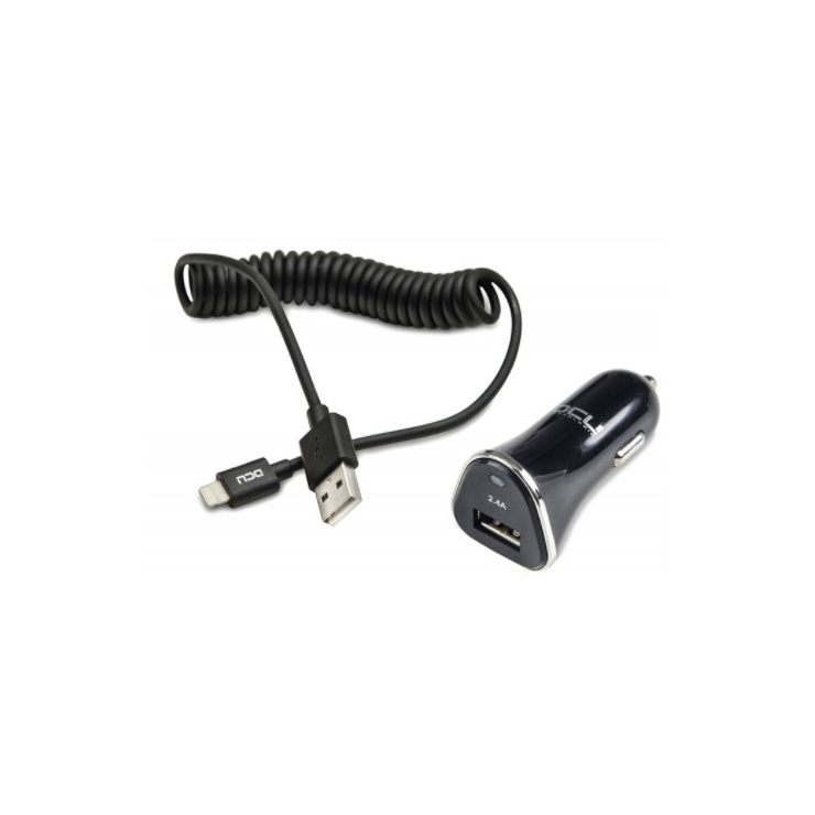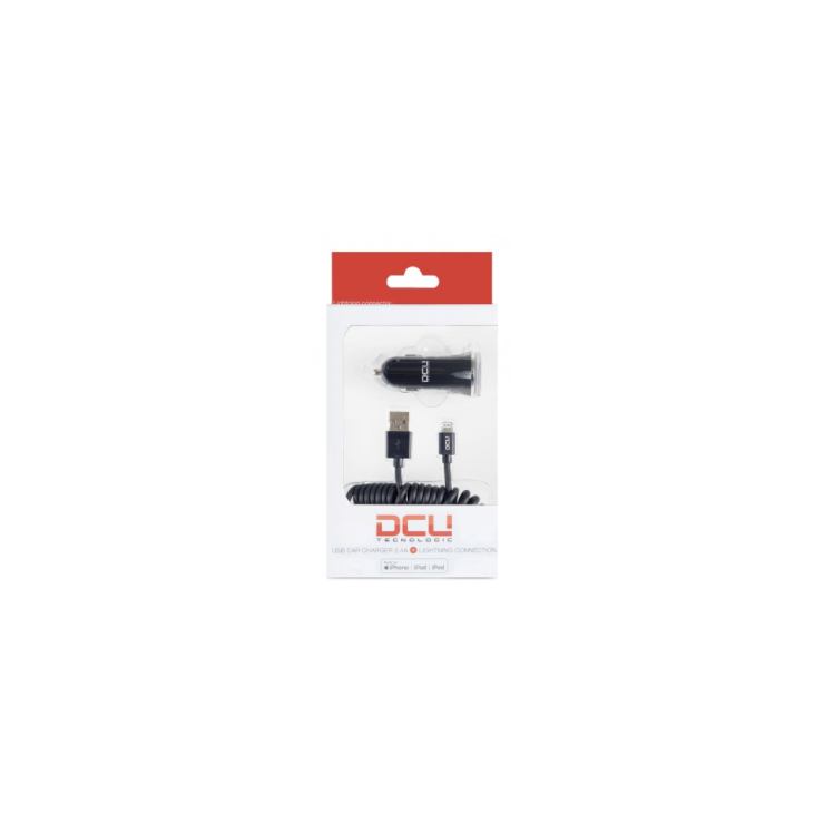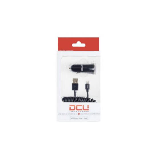 DCU ALIMENTADOR COCHE 1xUSB 2.4A+CABLE LIGHTNING RIZADO