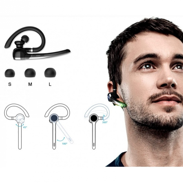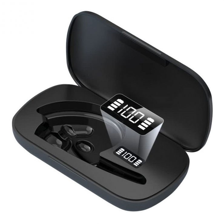 - Auricular mono con función manos libres y estuche de carga con indicador LED de batería restante