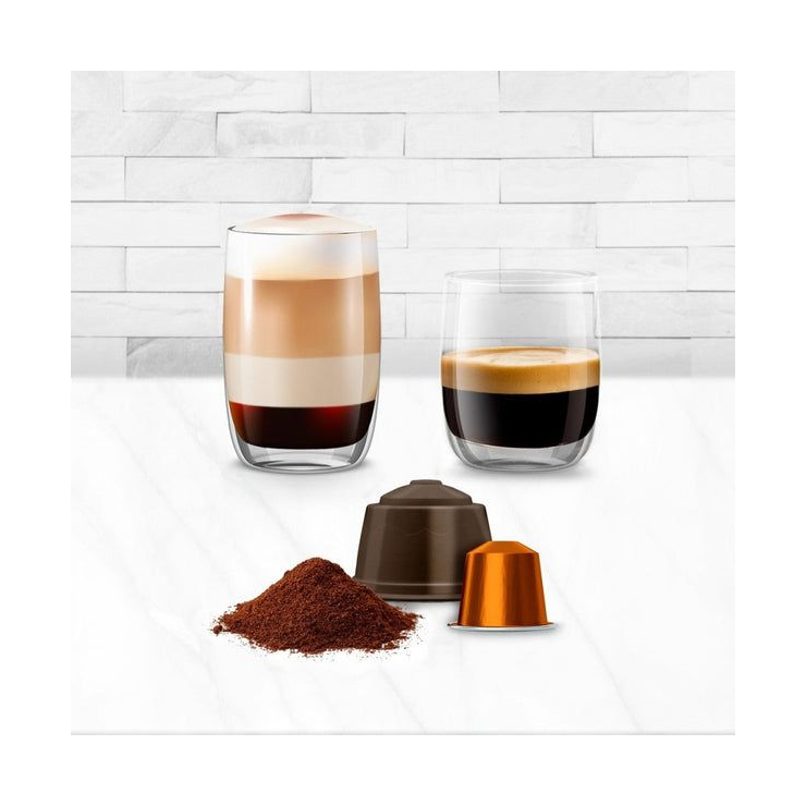 La cafetera multicápsula Bellagio se convertirá en un imprescindible en los desayunos de tu hogar. Es compatible con cápsulas tipo Nespresso y Dolce Gusto* y también con café molido, para que puedas disfrutar de una gran variedad de sabores.
