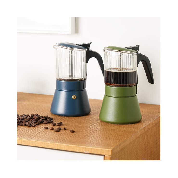 El cuerpo superior está fabricado en vidrio borosilicato de alta resistencia, lo que te permite ver el proceso de preparación y disfrutar del aroma desde el primer momento. Además, incorpora una válvula de seguridad para un uso confiable y un asa de baquelita termoaislante que garantiza una sujeción cómoda y robusta.