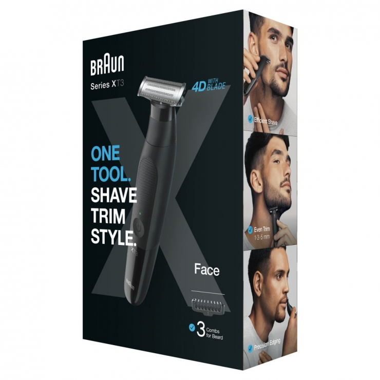 La Braun Series XT3 es una recortadora de barba y una afeitadora eléctrica para hombre, todo en una sola herramienta.