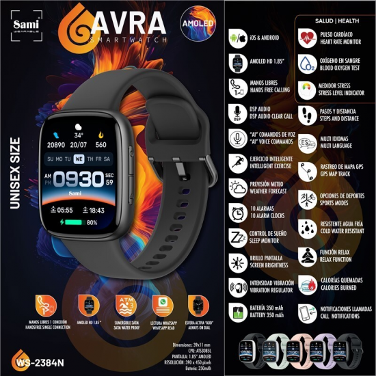 - Pasos, distancia,rastreo mapa GPS,función relax