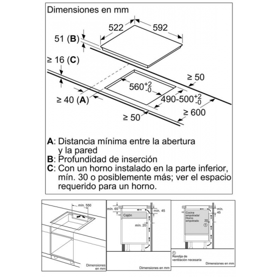 - Dimensiones del hueco: 560 x 490 mm (ancho x fondo)