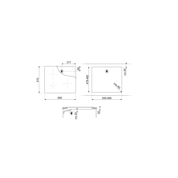 SMEG ENCIMERA INDUCCIÓN 60CM 3 ZONAS 9 POTENCIAS TC