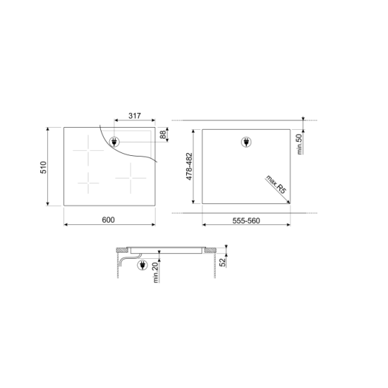 - Hueco estándar: 490x560 mm