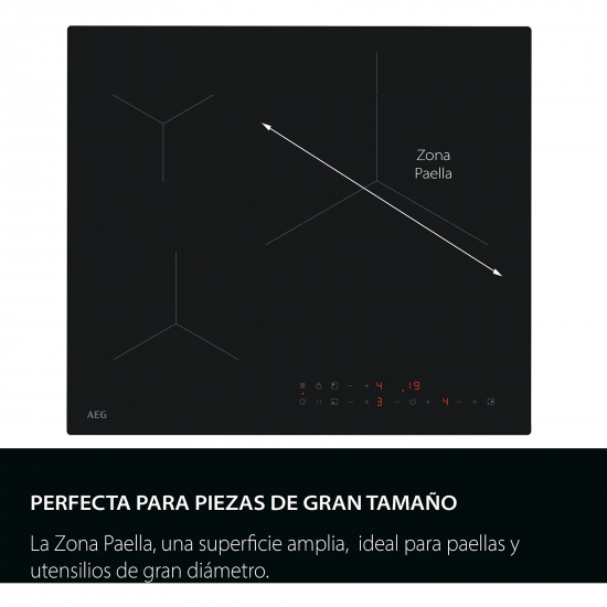 - Funciones de control: Indicador de calor residual en tres niveles, Avisador acústico, Calentamiento automático, Programa intensivo, Bloqueo de seguridad, Cronómetro, Temporizado Eco, Gestión de cocción flexible , Conexión Hob2Hood, Bloqueo de panel de control, Avisador de minutos, Función Pausa, Desactivar sonidos, Temporizador