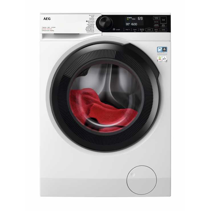 - Lava y seca en un solo ciclo, o simplemente refresca con vapor: Las lavadoras secadoras AEG de la Serie 7000 ProSteam son electrodomésticos 3 en 1 que agilizan el proceso de hacer la colada con programas de lavado, secado y refresco al vapor. El vapor utiliza un 96 % menos de agua, y es más suave que el lavado, lo que ayuda a que la ropa dure más