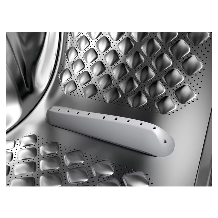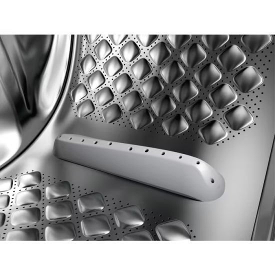 - El diseño del patrón del tambor care es incluso más suave con tus prendas: El tambor Care permite que las prendas se deslicen suavemente gracias a su patrón en forma de cojín y sus paletas elevadoras optimizadas. Una fina película de agua cubre los orificios del tambor durante el lavado. Protegiendo los tejidos y proporcionando una experiencia mucho más suave