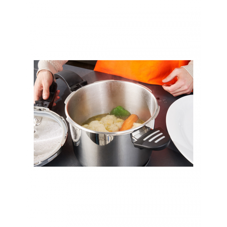 - Olla a presión de acero inoxidable 18/10 de máxima calidad.