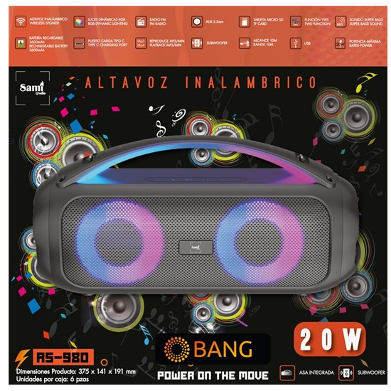 SAMI ALTAVOZ BANG BT FM MICROSD USB 20W