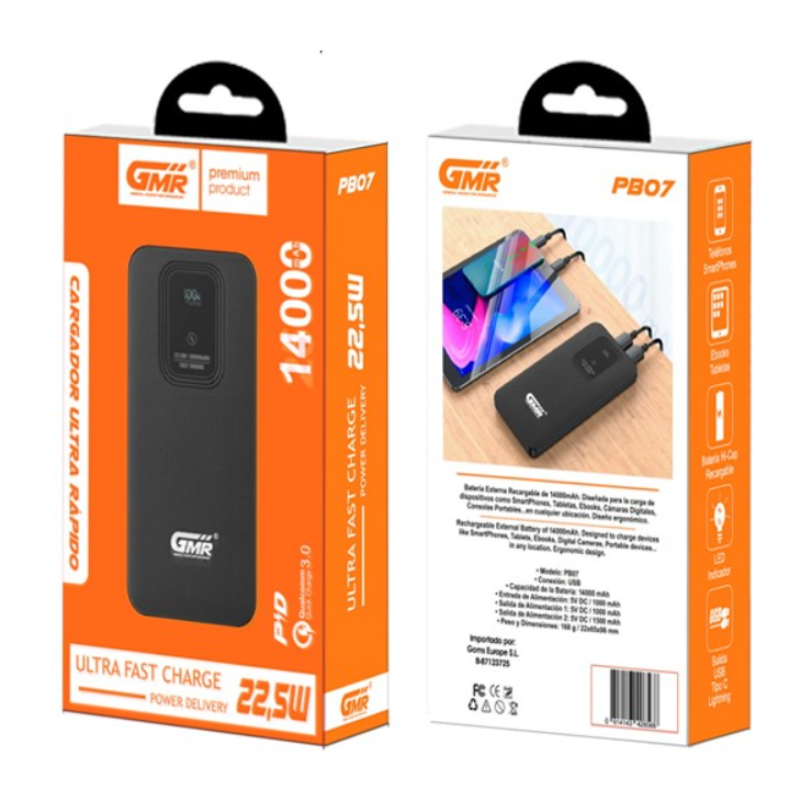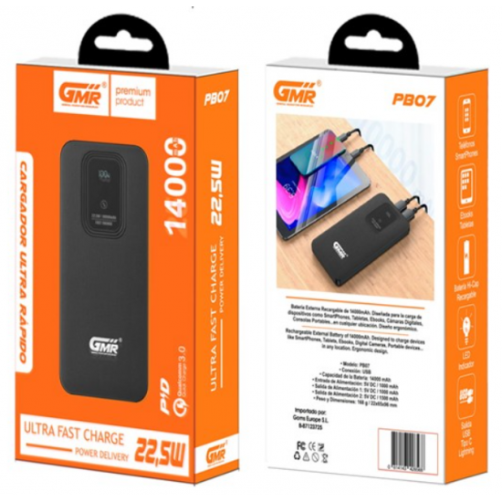 GMR POWER BANK 14000 mAh CARGA RÁPIDA BLANCO
