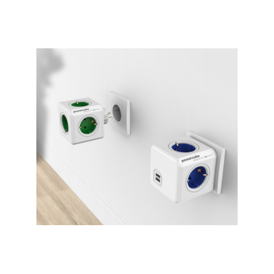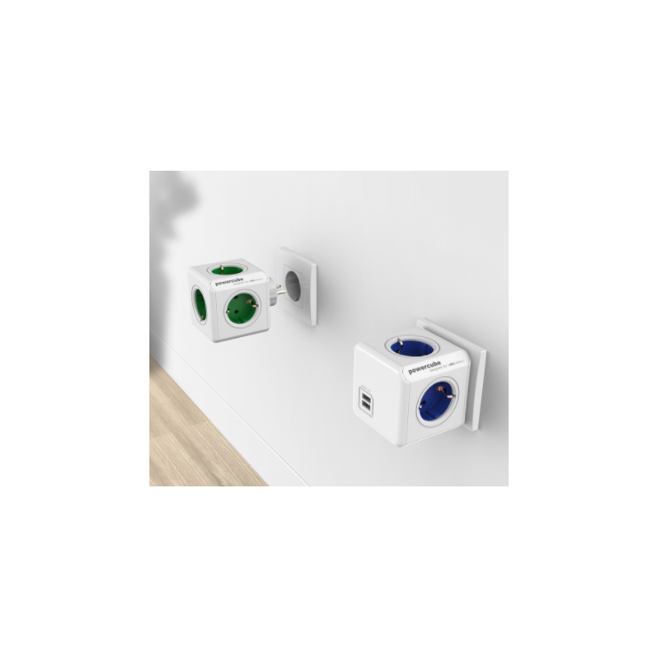 - Multiple con 5 tomas de corriente adicionales en un diseño cúbico evitando superposiciones de los cables.