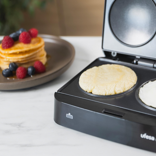 UFESA SANDWICHERA 2 CAVIDADES 750W ANTIADHERENTE REDONDA NEGRO