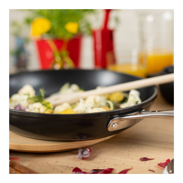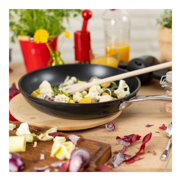 - Ideal para freír suavemente y con poca grasa gracias a la capa antiadherente de 3 capas con partículas de titanio