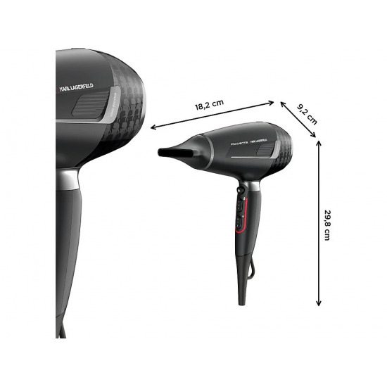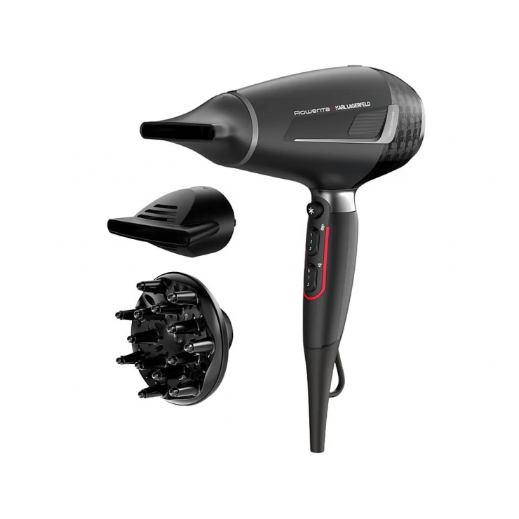 Con un potente motor AC de 2200 W, el secador de pelo K/Pro Stylist CV887LF0 de Rowenta x Karl Lagerfeld te trae un secado rápido junto a un moldeado rápido y profesional en cada uso. La tecnología generadora de iones de Rowenta te ayuda a conseguir un pelo suave y sin encrespamiento, mientras que su exclusivo recubrimiento Keratin & Glow mantiene tu pelo liso y con un brillo radiante. Con una amplia variedad de accesorios que te permiten moldear tu pelo a tu gusto, experimenta sesiones de peluquería desde la comodidad de tu casa. Además, incluye tres accesorios de moldeado para que puedas escoger entre rizos voluminosos o un peinado liso y sedoso sin perder la vitalidad y frescura de tu cabello. ¡Te sentirás cada día como recién salida de la peluquería!