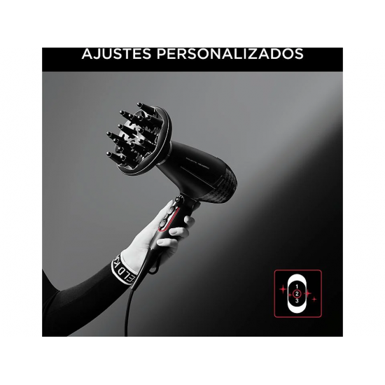 Tomar el control absoluto de tu sesión de peinado es más fácil que nunca gracias a sus 6 ajustes (3 temperaturas y 2 velocidades), para que adaptes el flujo de aire y la temperatura durante la sesión.
