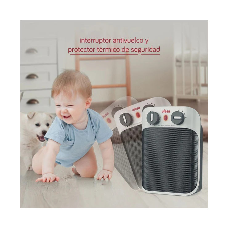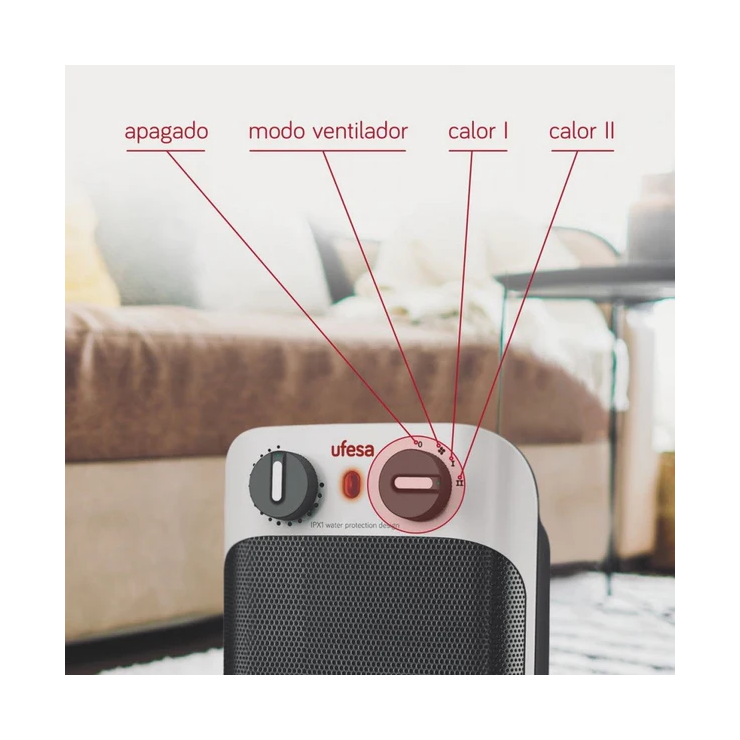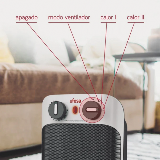 - 3 niveles de potencia: 2 potencias de calor y función ventilación